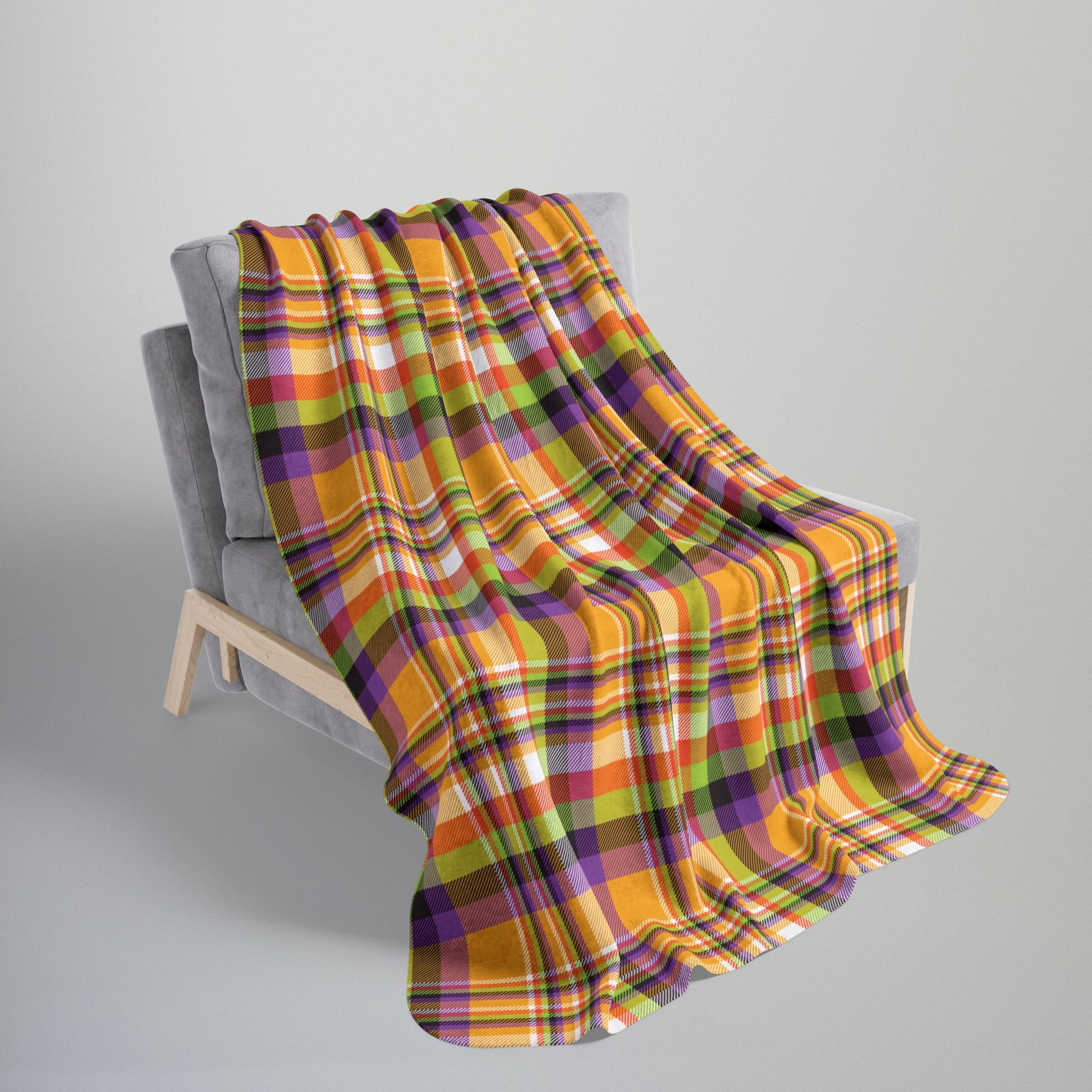 Halloween Colors Plaid Fleece Sherpa Blanket