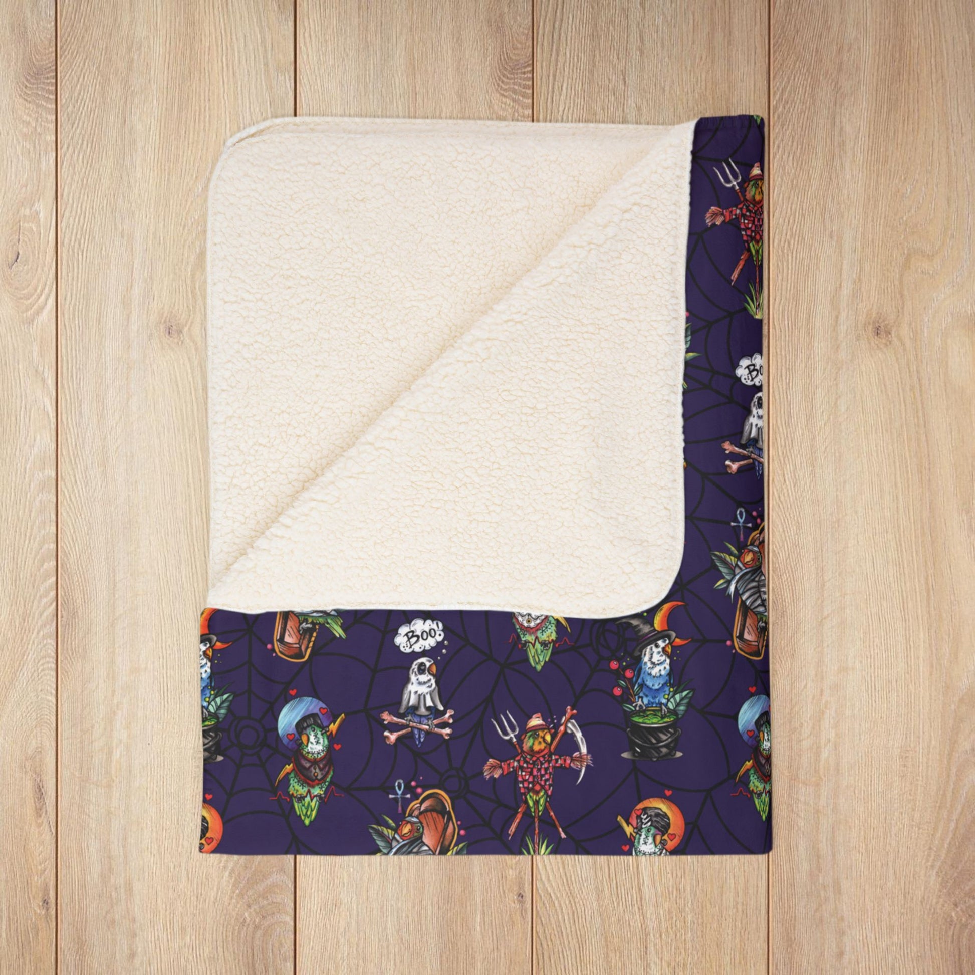 Halloween Lovebirds Fleece Sherpa Blanket, Hand-Drawn & Hand-Colored