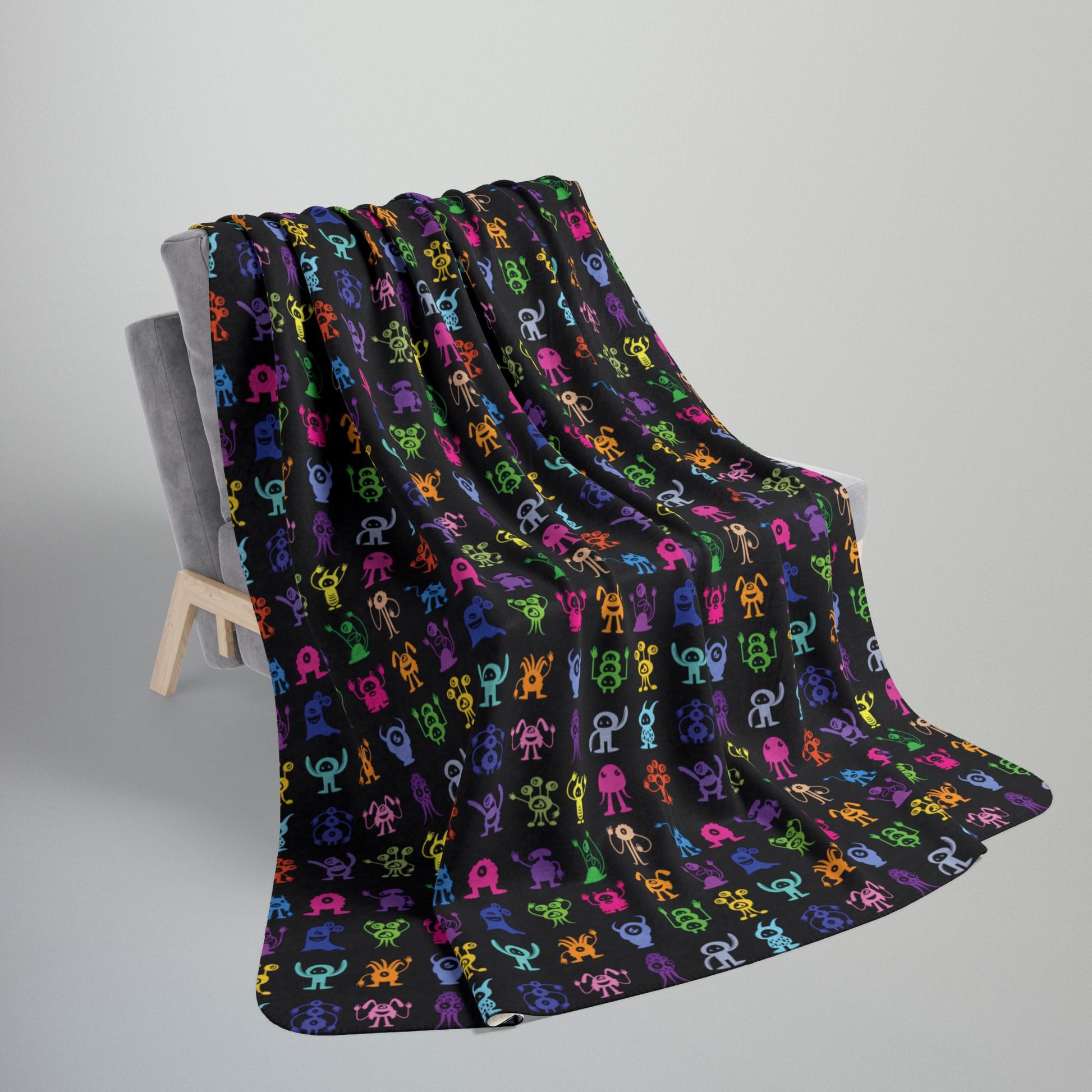 Halloween Multicolored Monsters Fleece Sherpa Blanket