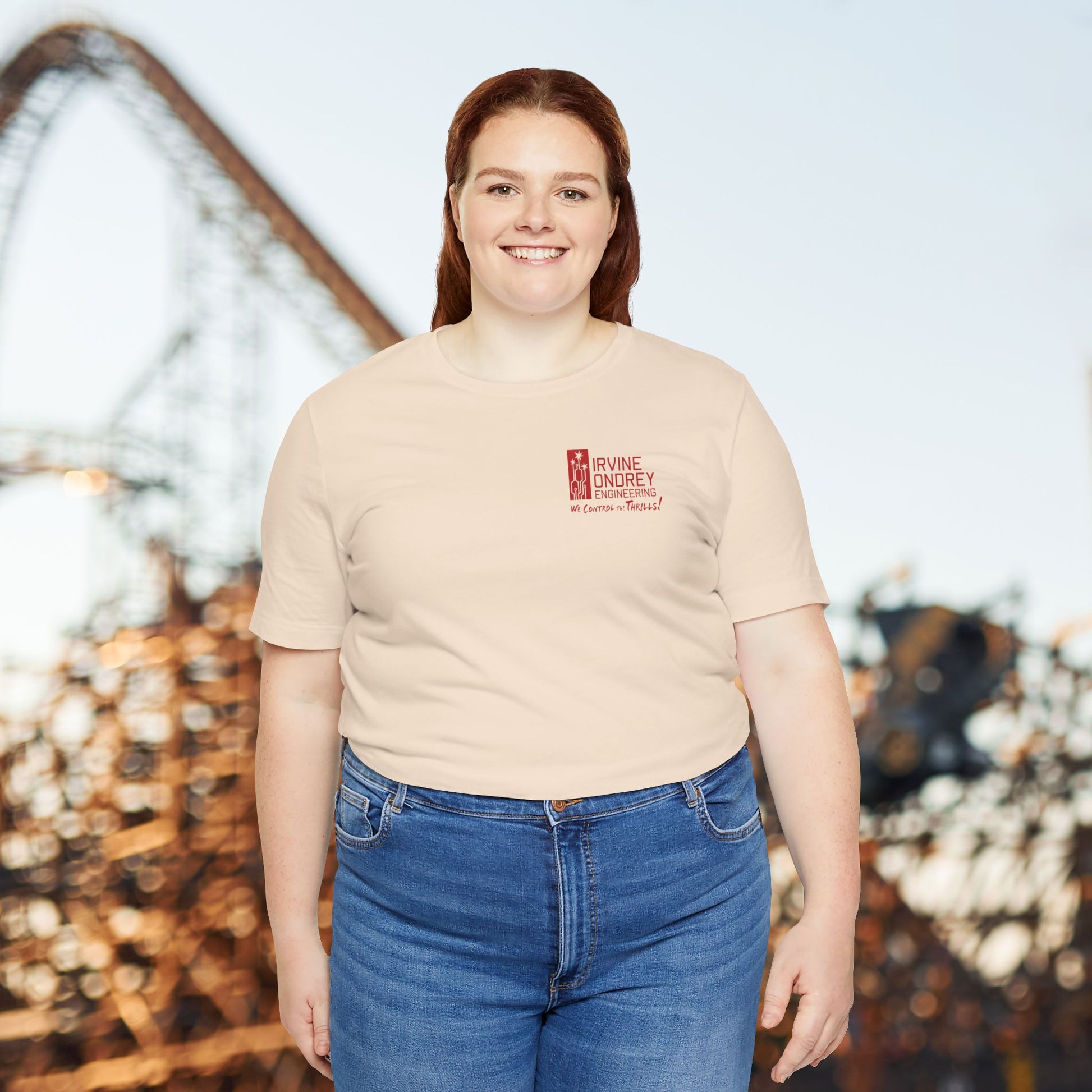 I Just Wanna Watch Horror Flicks & Ride Roller Coasters Tee (BACK graphic) • Irvine Ondrey Engineering