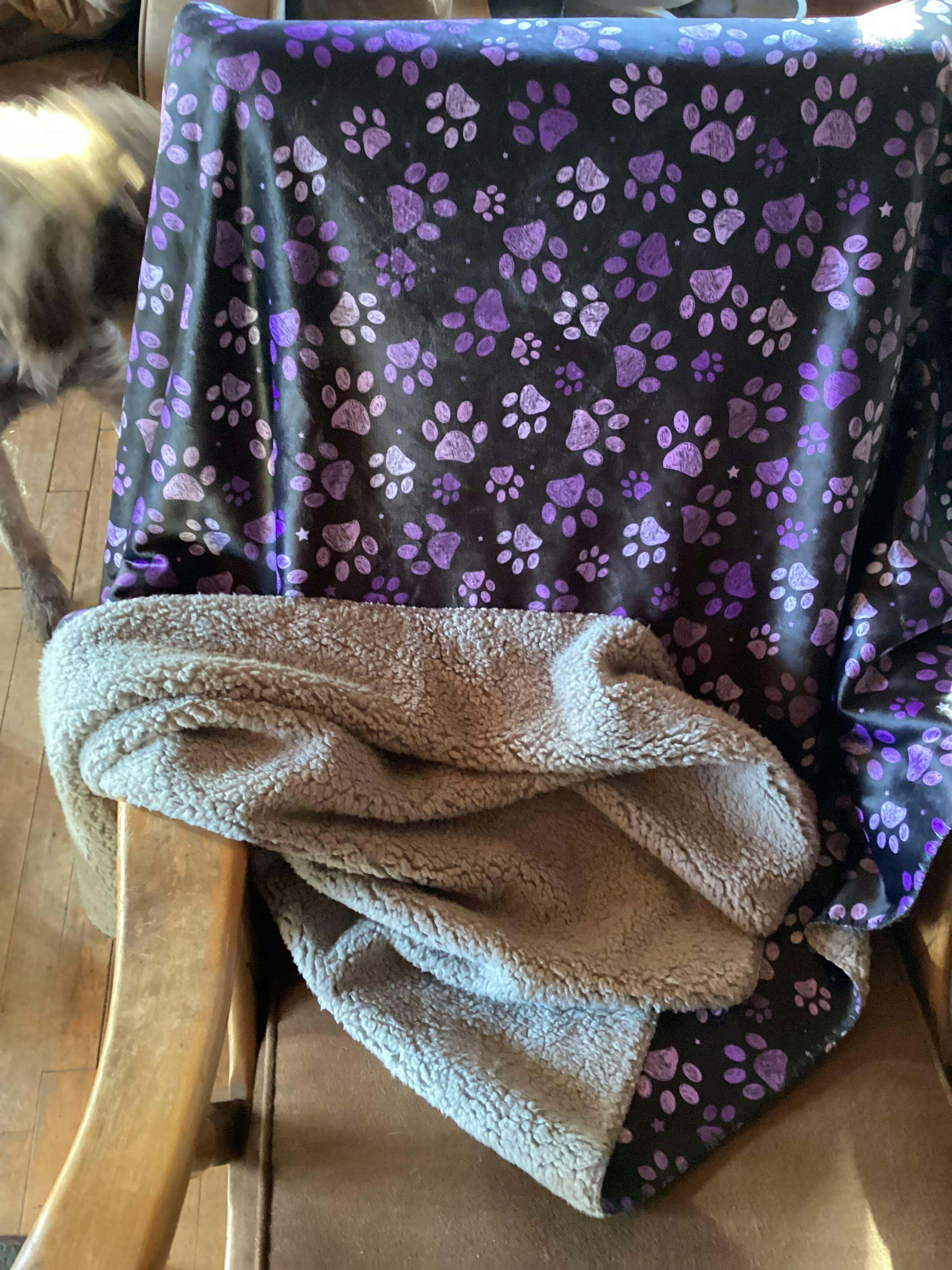Purple Paw Prints Black Fleece Sherpa Blanket