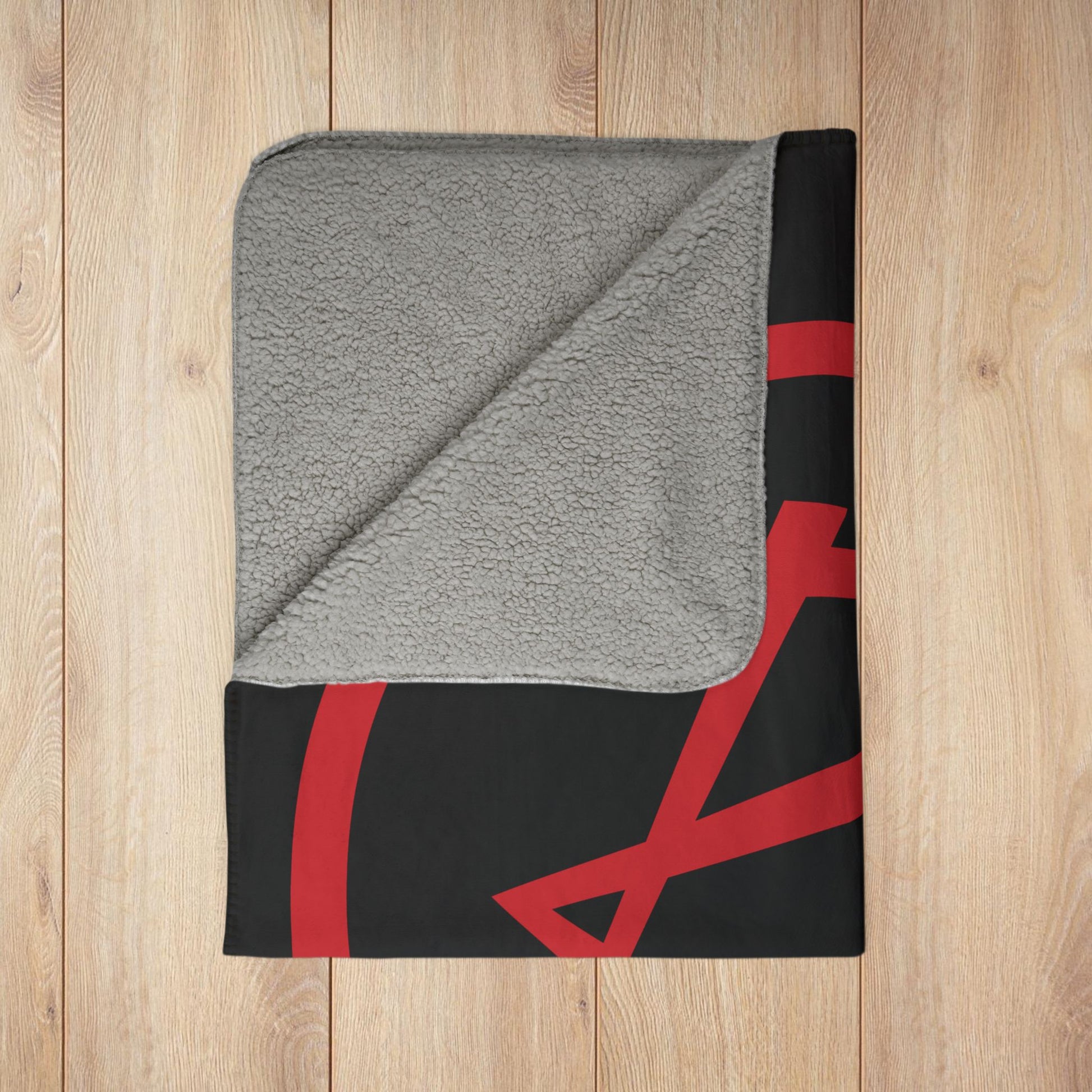 Rambler Red Logo Black Fleece Sherpa Blanket