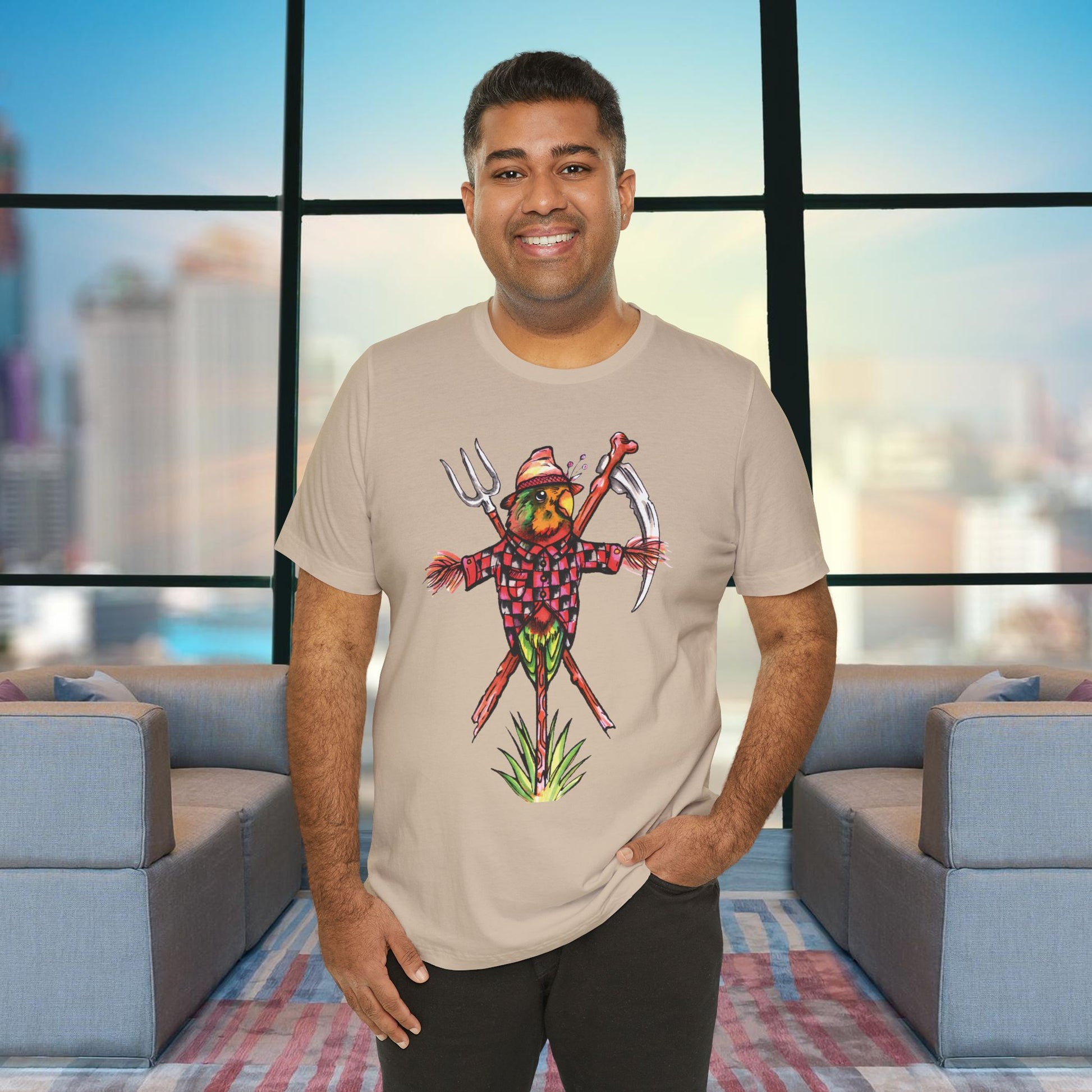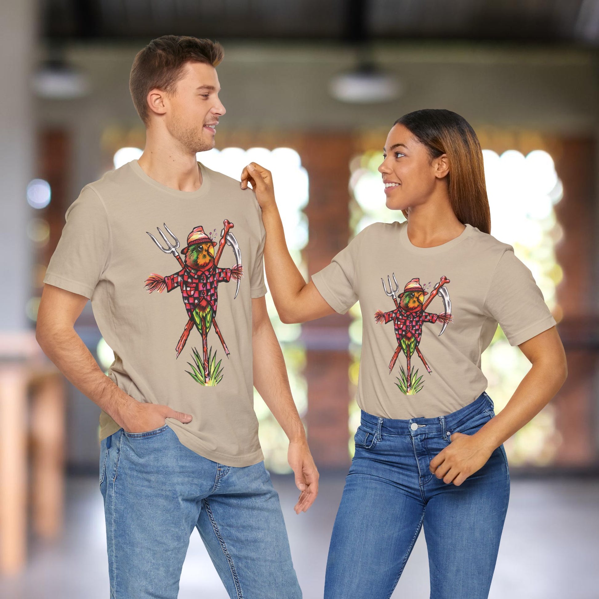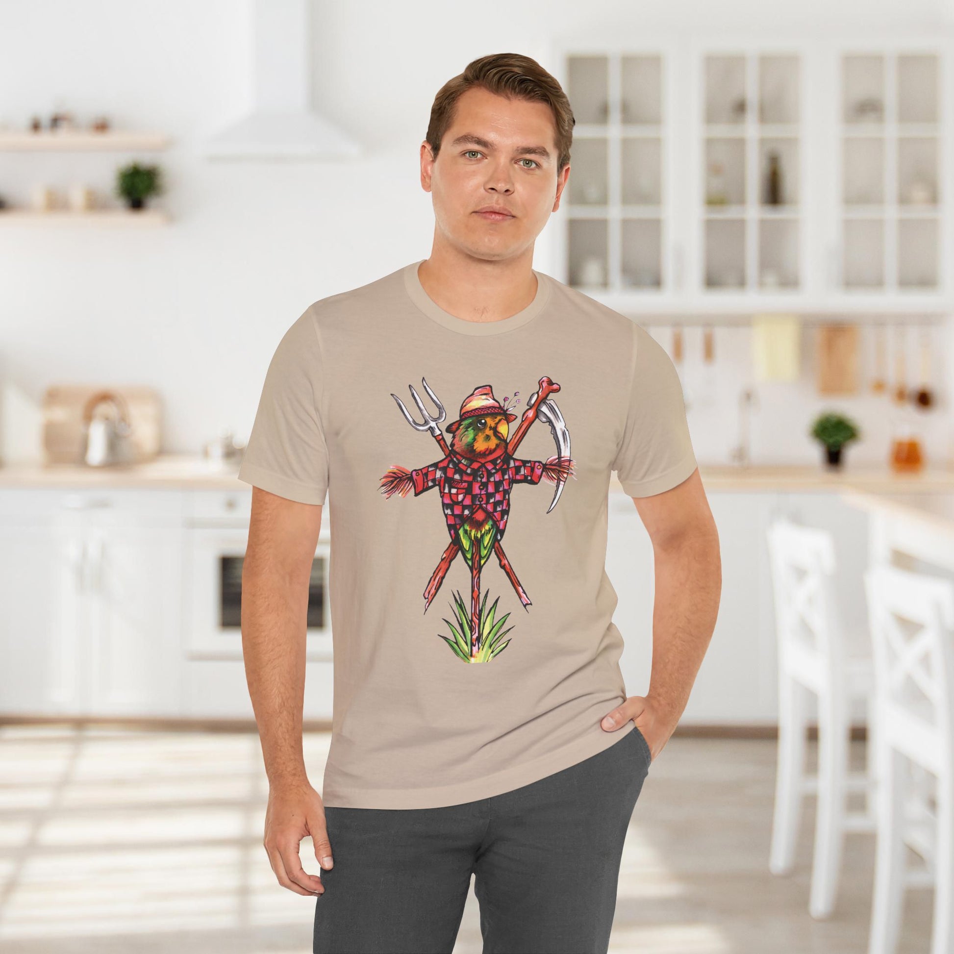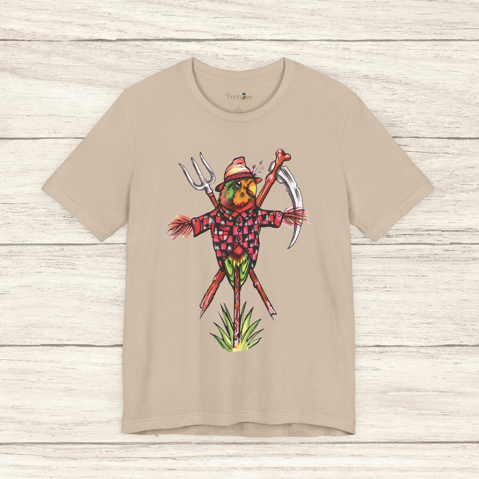 Scarecrow Lovebird, Hand-Drawn & Hand-Colored Tee
