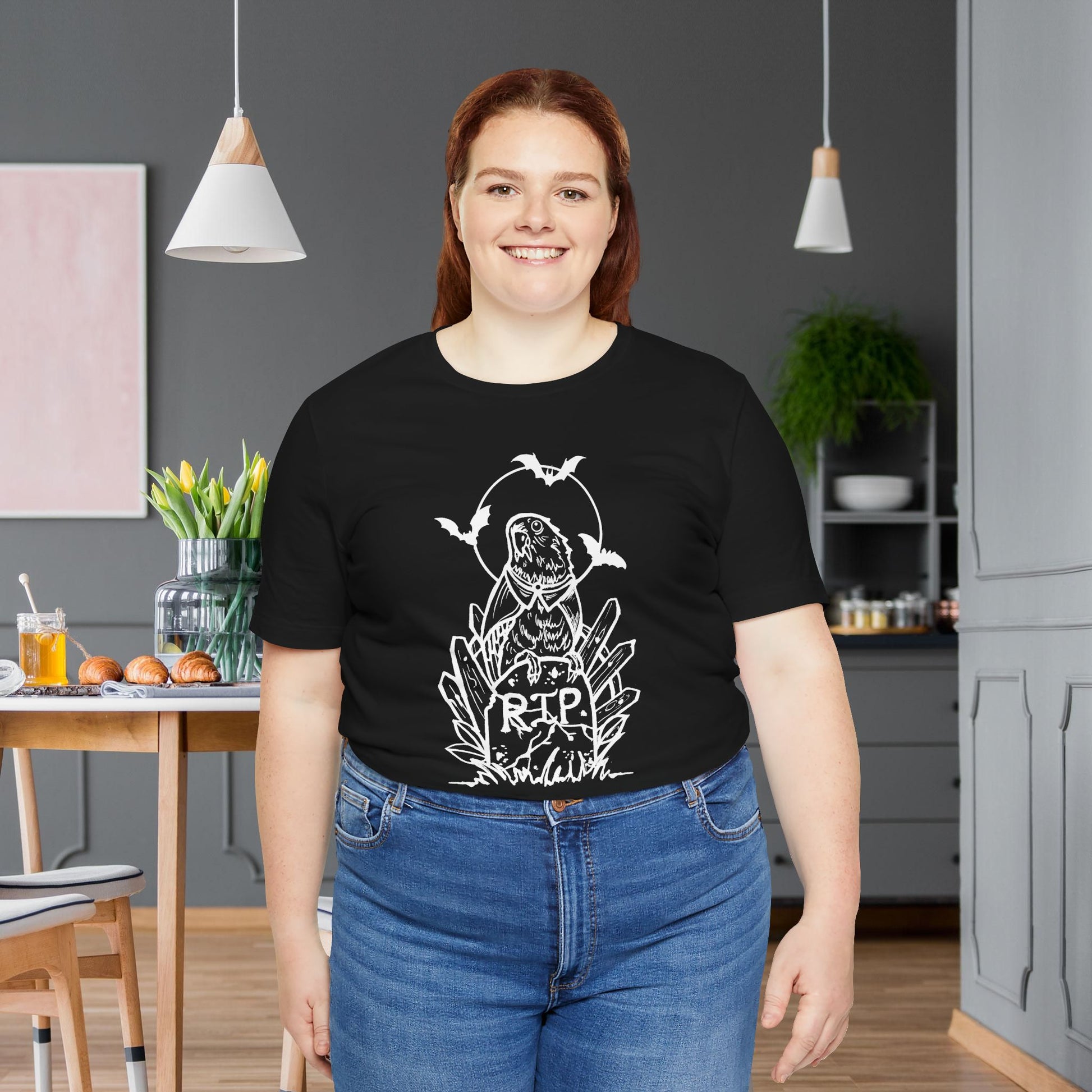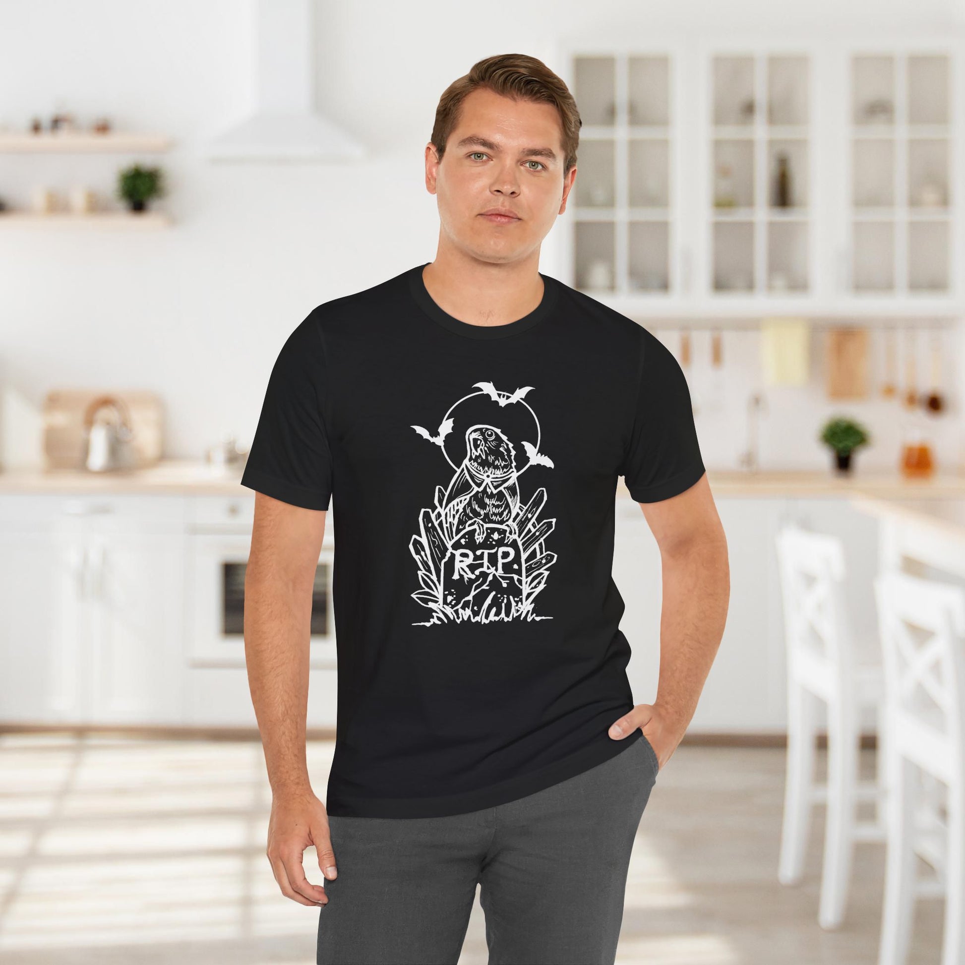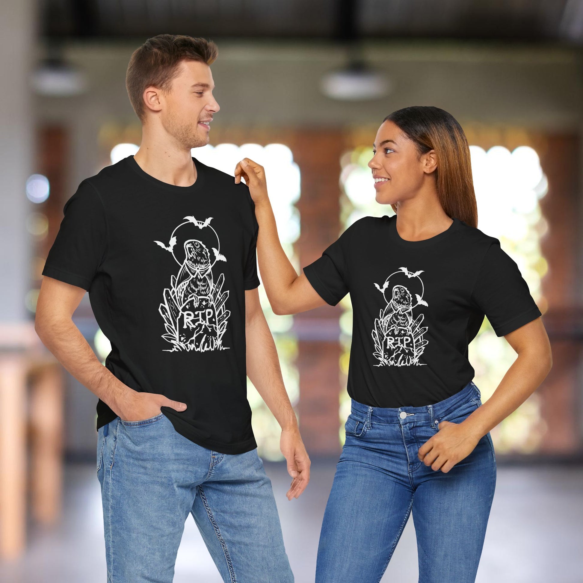 This t-shirt, featuring a vampire lovebird on a tombstone, will help you celebrate Halloween every year! Steve’s line art drawing perfectly captures a hand-drawn lovie evil, but cute vampire that you probably don't want to mess with. This soft shirt provides a comfortable and stylish way to express the connection you two have, making it a perfect addition to your wardrobe. Design © 2025 PrintiBee LLC.