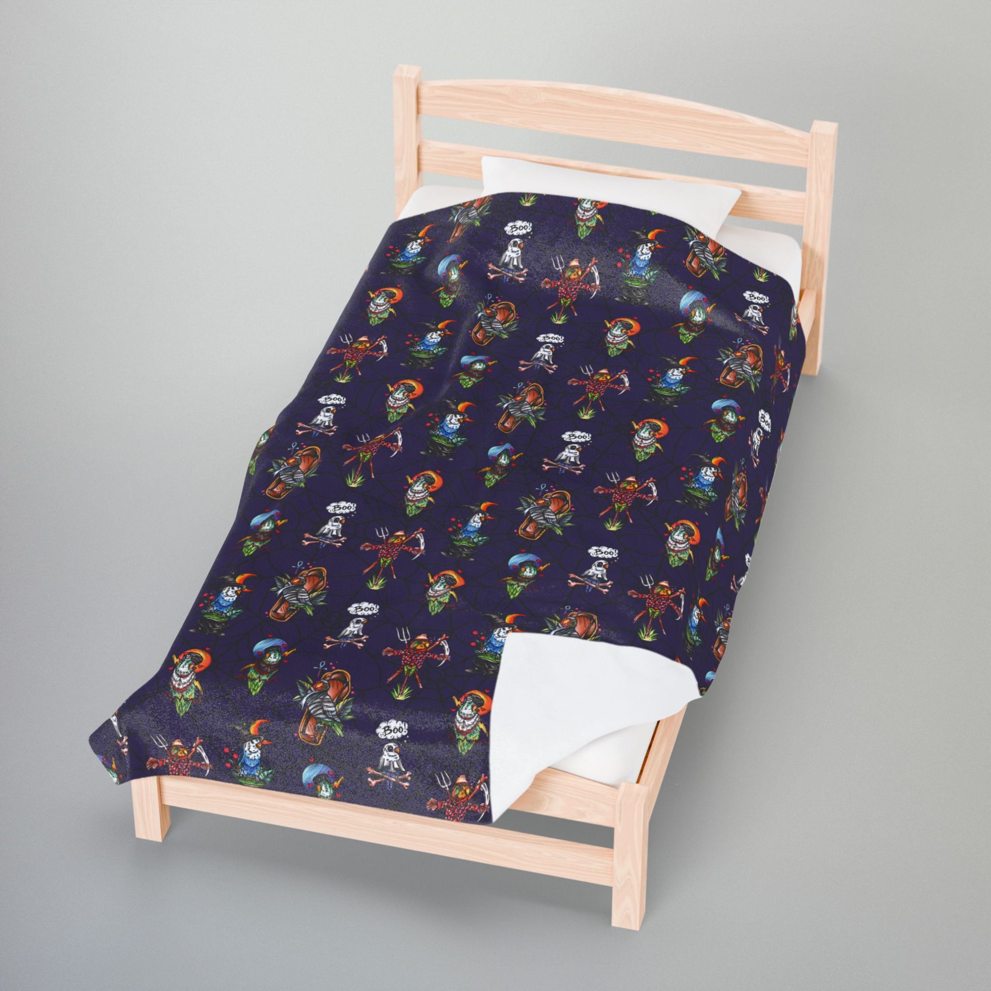 Halloween Lovebirds Velveteen Plush Blanket, Hand-Drawn & Hand-Colored